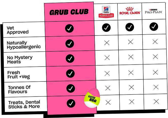 Formulated by top dog nutritionists & sealed with our vets' stamp of approval, Grub Club is a go-to recommendation for dogs with allergies & sensitivities.