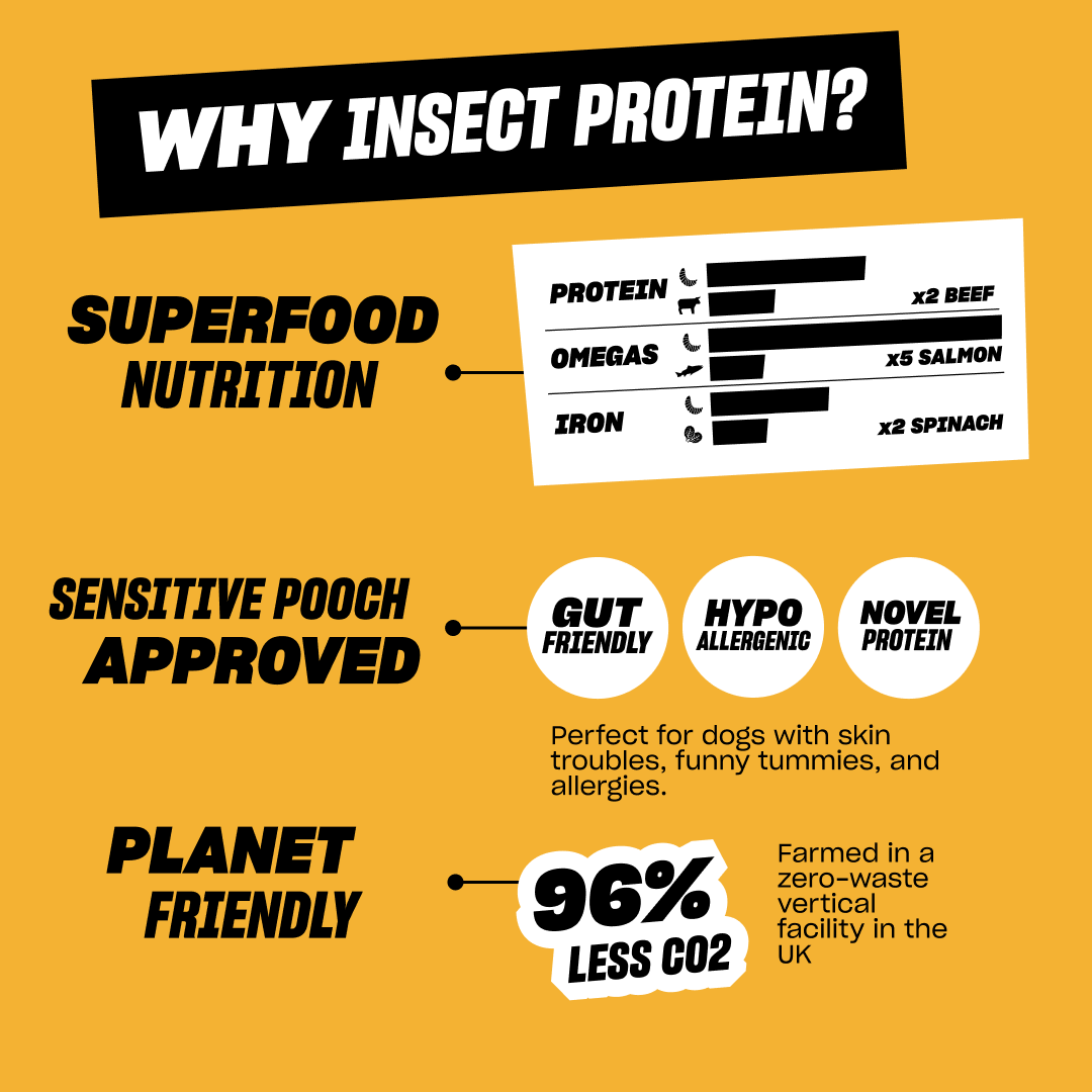 Peanut Butter 24%, Dried Insect 20%, Vegetable Glycerine, Gram Flour, Sweet Potato Flour, Pea Flour, Fresh Blueberries 4%, Dried Banana 1%, Prebiotics 0.01%, Minerals