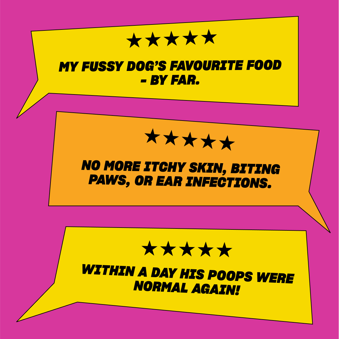 Say Goodbye to itchy skin, upset tummies & runny poops - our tasty recipes are bursting with goodness & gentle on your pooch.